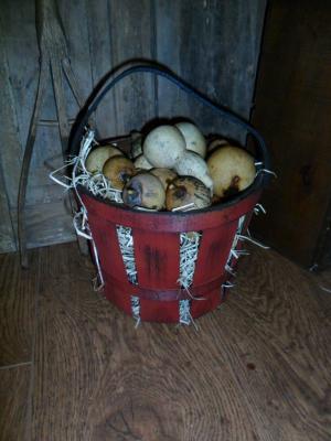 Primitive Farmhouse Apple Basket, Filled w/ Dried Gourds, 1/2 Peck Size, Wood