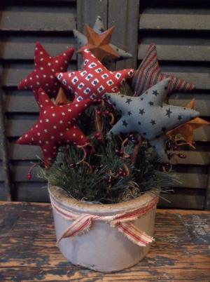 Gathering of Small Primitive Americana Stars in Small Antique Crock