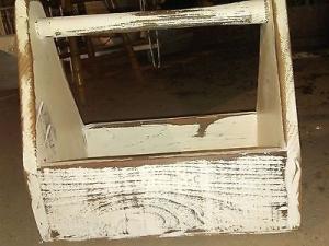 vtg wooden tool box tote carrier shabby white paint farm barn