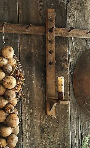 Primitive Early Lighting Inspired Tobacco Lath Adjustable Candle Sconce w/Stub