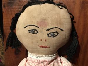 Antique Primitive Folk Art Hand StitchHomespun Lace Cloth Hair Rag Doll AAFA