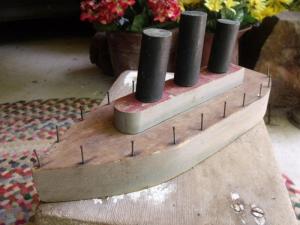 Primitive Antique Wood Steam Ship Shaped Thread Spool Holder Americana Folk Art
