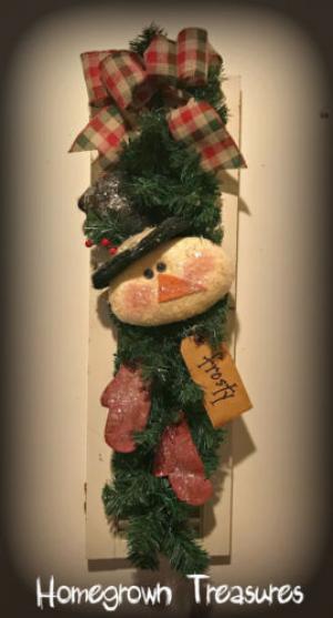 Primitive Snowman with Top Hat, Pine Garland on Shutter Door Hanger!!