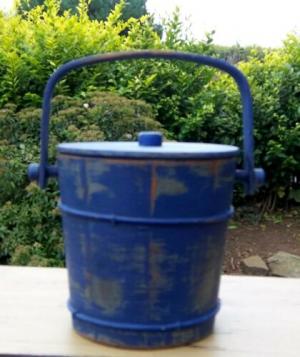 Antique FIRKIN Sugar Bucket SHAKER Primitive Lid PANTRY~BLUE ~ 5" TOP OF STACK