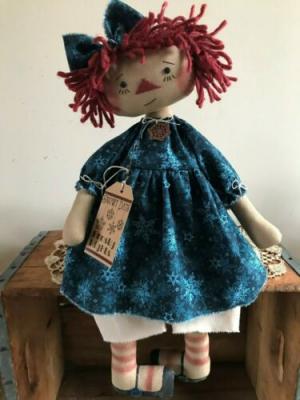 Primitive Raggedy Annie Baskets Of Santas & Snowmen Annie