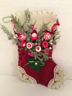 VTG Christmas Button Bouquet/Sock-Prim-Shabby Cottage Chic-Rustic Farmhouse