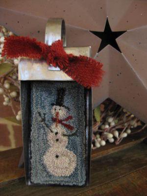 Prim Punch Needle ~"Frosty"~Snowman on Vintage Metal Scoop