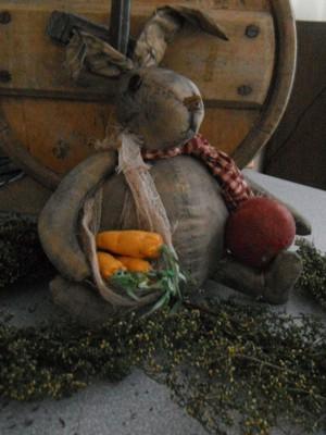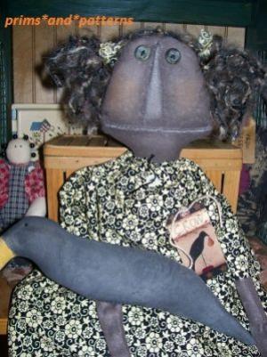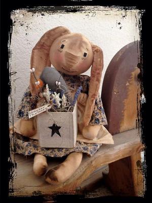 Primitive girl bunny rabbit raggedy doll, Prim Box With Flowers And Crow