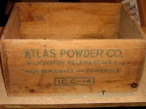 Vintage Antique Mine Wooden Atlas Dynamite High Explosives Powder Box