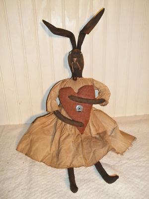 ♥ Primitive Grungy Bunny Rabbit Doll and Valentine Heart ♥
