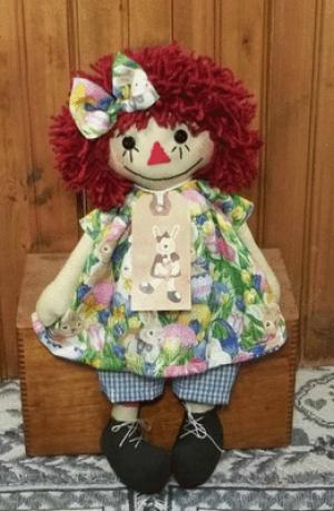 Handmade EASTER Button Eye Raggedy Ann Doll in BUNNY Dress