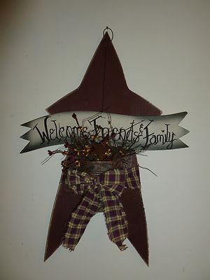 Large Primitive Christmas SNOWMEN Door Greeter ~ Twig Arms & Homespun
