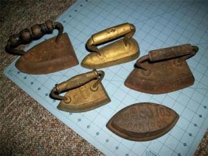 5 early different solid cast iron clothes irons asbestos sad iron oner geneve