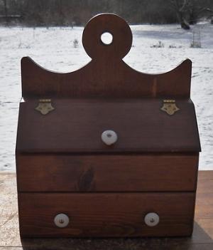 Primitive Wood Candle Storage & Match Box / Old Wood Wall Hanging Document Box