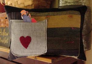 Primitive Stitchery My Winter Valentine Pillow Old Wool/ Quilt Piece Love Note