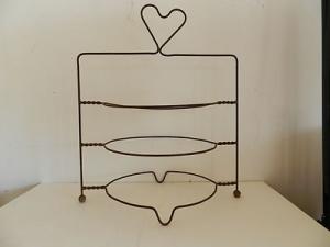 antique 3-tier PIE/PLATE RACK HAND WROUGHT farm KITCHEN WIRE FOLK ART