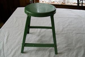 VINTAGE MINIATURE OLD GREEN PAINT MILKING STOOL !
