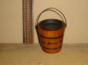 Vintage Bank Miniature Wood Money Bucket W/Bail Handle Souvenir of Onekama Mi.
