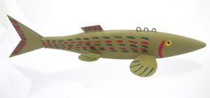 Vintage Green Spotted Fishing Decoy w/ Painted Yellow Eyes / Alluminium Fins yqz