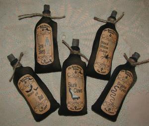 Primitive Halloween Witches Cloth Potion Bottles Ornies./Bowl fillers/Tucks