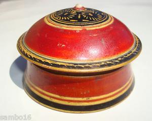 Antique Primitive Treenware Peaseware Wooden Covered Bowl Spice Container #32