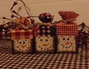 Primitive Wood Snowman Blocks Crackle Country Farmhouse Decor