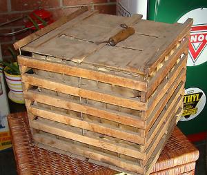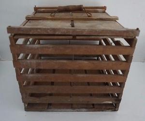 ANTIQUE WOODEN EGG CRATE OLD WOOD EGG CARTON WOOD HANDLE