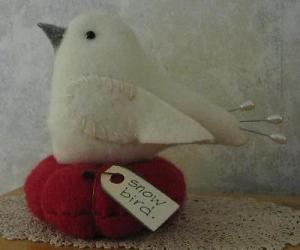 PRIMITIVE WOOL WHITE SNOW BIRD CHRISTMAS DOVE MAKE DO PIN CUSHION PFATT