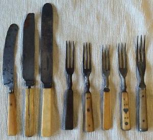 Bone Handle Fork Knife Set Antique Civil War Era Primitive Lot Green River