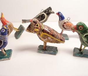6 Vintage Painted Wood Birds Folk Art Primitive 1.78 inches tall Each Unique