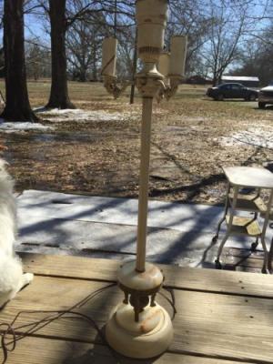 Antique Vtg Edwardian White 4 Light Floor Lamp w Glass Marble Footed Cast Iron