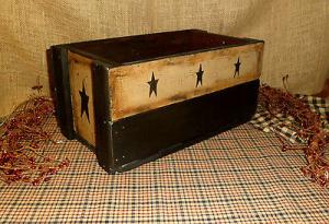 PRIMITIVE WOOD CRATE BOX STORAGE BLACK TAN CRACKLE STAR COUNTRY FARMHOUSE DECOR