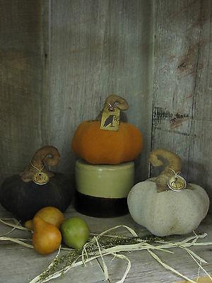 Primitive Grungy Grubby Stained Pumpkin Trio Handmade Fall Autumn 6"H Handmade