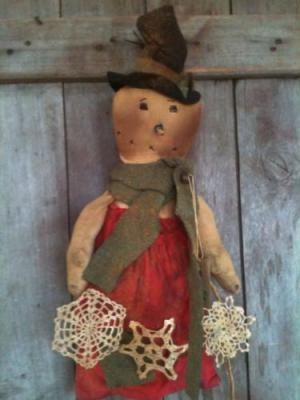 Primitive 22" snowman In Red Bag Door Charmer Greeter Famehouse doll Christmas