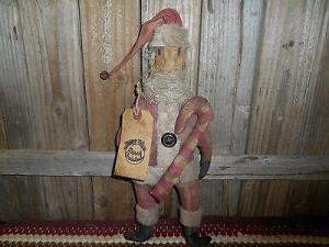 Primitive Grungy Christmas 15" Santa with Candy Cane