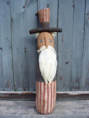 Primitive Icicle Snowman - Red Burlap Top Hat #833