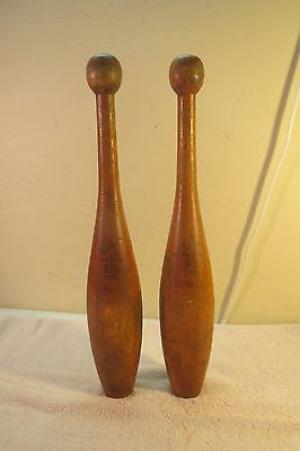 3/4 lb Antique Juggling Pins Clubs USA Made Logo Man with Tennis Racket