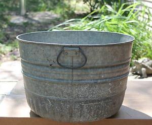 Vintage galvanized wash tub fluted planter great patina 17 in x 11 1/2 in