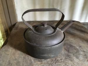 Sweet Old Antique Squatty Tin Kettle Tea Pot Patina AAFA Unusual Form