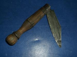 Primitive Style Handmade Folding Knife Initial C Wood Handle