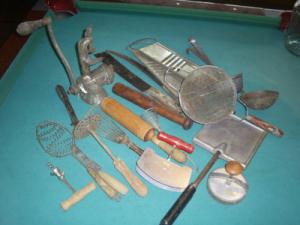 Antique Primitive Food Choppers Wood & Cast Iron. With Unidentified Mystery item