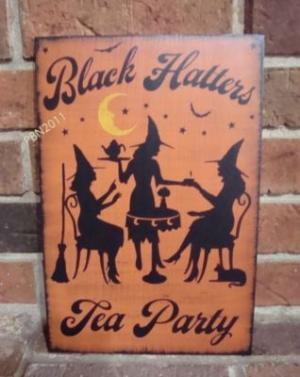 Primitive Style Halloween Witch Sign BLACK HATTERS TEA PARTY Wiccan Charms Spell