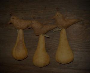 PRIMITIVE PEAR / PARTRIDGE ORNIES ORNAMENT HANDMADE CHRISTMAS TREE BIRDS