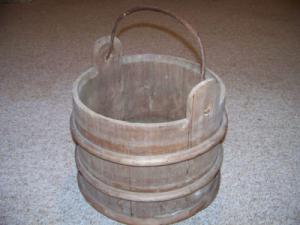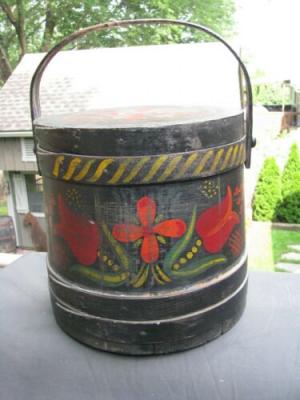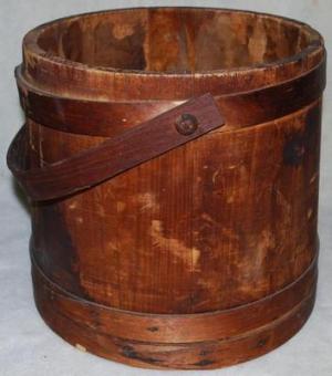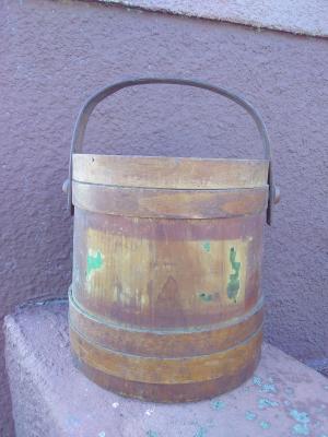 Antique Wooden Firkin Sugar Shaker Bucket w/ Wooden Handle LARGE