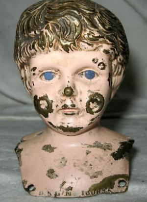 VTG ANTIQUE BRASS ENAMELED GIRLS FACE DOLLS HEAD CHILD GERMANY D.R.O.M. PATENT