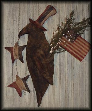 PRIMITIVE AMERICANA BLACK UNCLE SAM CROW DOOR DOLL PATRIOTIC STARS AND FLAG PRIM