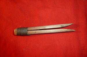 ORIG CIVIL WAR ERA CARVED WOOD CLOTHESPIN W/ TIN RETAINING RING - HERSHEY MUSEUM