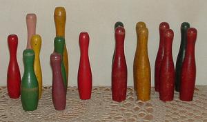 16 Vintage Antique Wooden Toy Bowling Pins Old Original Paint Wood Lot #11 NR
