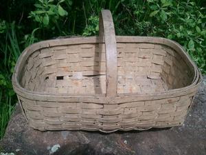 Antique Country Primitive Old Yellow Painted Splint Gathering Basket