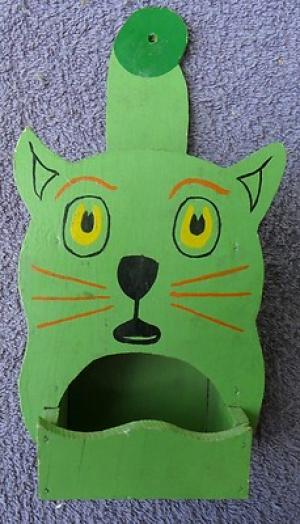 Vintage Hand Made Folk Art Cat Original Blue Paint